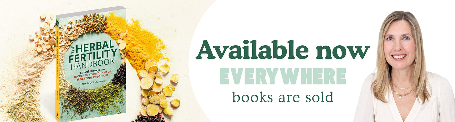 📘 My book, The Herbal Fertility Handbook: Natural Strategies to Increase Your Chances of Getting Pregnant, is available in paperback, audiobook, and ebook with Storey | Hachette Book Group. You can order from any bookseller. Learn more here.